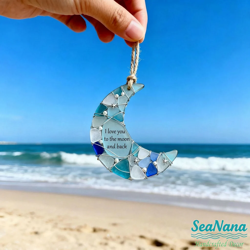 🔥Last Day Promotion 49% OFF-Handcrafted Sea Glass Moon Ornament: 'I Love You to the Moon and Back🌙