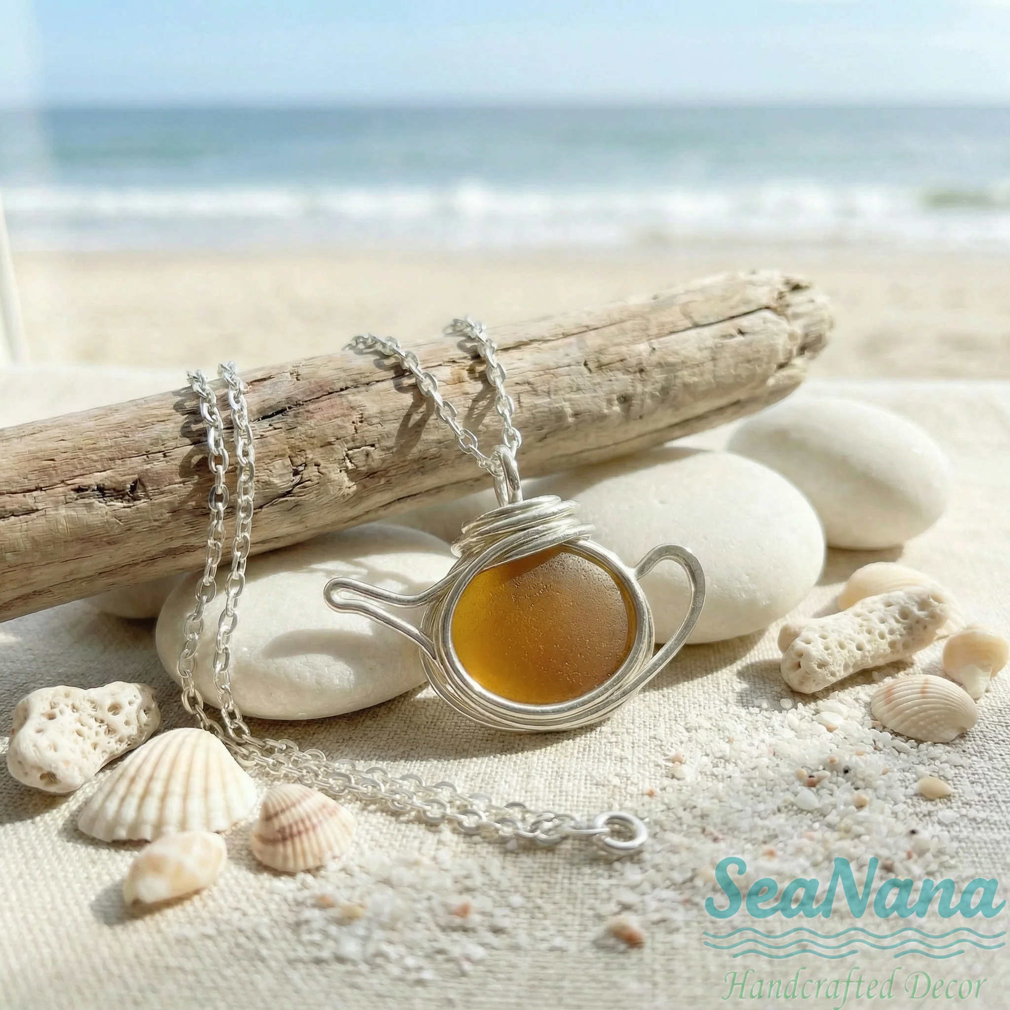 ☕Handcrafted Sea Glass Teapot Charm Necklace