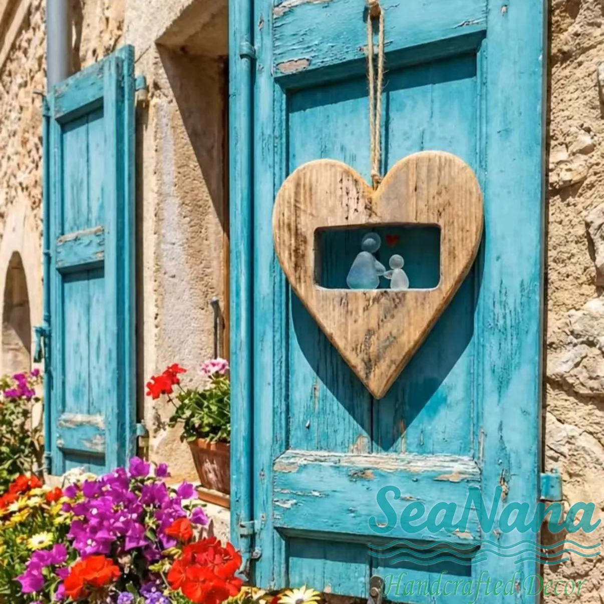 This isn't just a decoration—it's a tribute to the love that never fades. The larger sea glass figure stands beside the smaller one, just as a mother stands beside her child through every season of life. Together, they're framed by weathered wood and crowned with a little red heart, capturing the warmth, protection, and unconditional love that defines motherhood.
